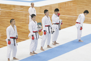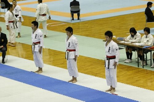 ■ 団体組手 準優勝 決勝戦(対、柏原戦 2−3) 先鋒× 羽柴紘一(1年) 次鋒○ 清水良介(1年) 中堅× 佐藤光介(2年) 副将× 松本隆弘(1年) 大将○ 中村豪秀(2年) |