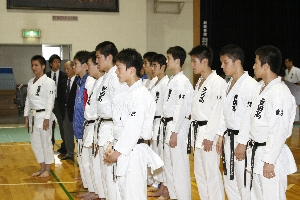 ■ 団体組手 優勝 決勝戦(対、日大鶴ヶ岡戦 5−0) 先鋒○ 羽柴紘一(1年) 次鋒○ 清水良介(1年) 中堅○ 松本隆弘(1年) 副将○ 松本拓也(1年) 大将○ 中村豪秀(2年) ※初戦より一人も落とさず完全優勝!! |